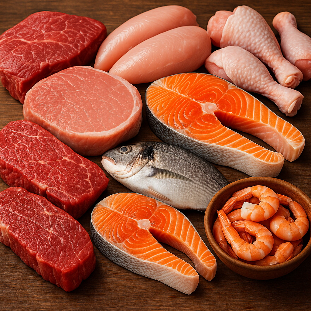 Our range includes frozen beef, pork, poultry, fish fillets, whole fish, salmon, shrimp and assorted seafood, sourced from certified producers and inspected according to international standards.